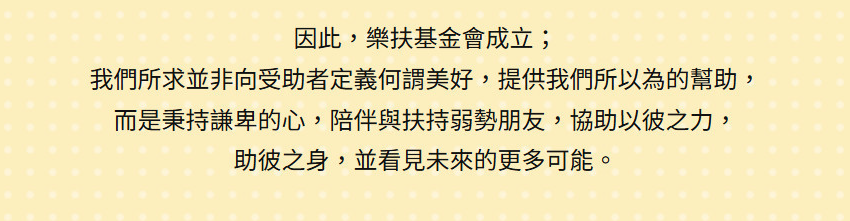 我們抱持著「在教育孩子學習知識之前,更應該先填飽孩子的肚子」這樣的信念,提供給弱勢孩子,從吃飯到學習的完整服務。
